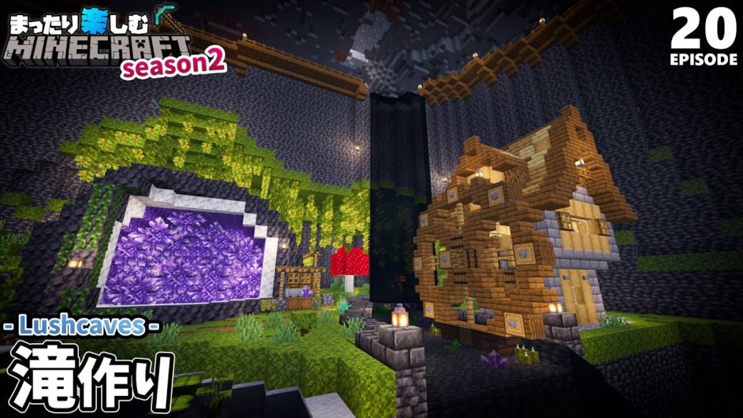 洞窟の村に滝と水車小屋を作ろう!!【マインクラフト】サバイバル #20